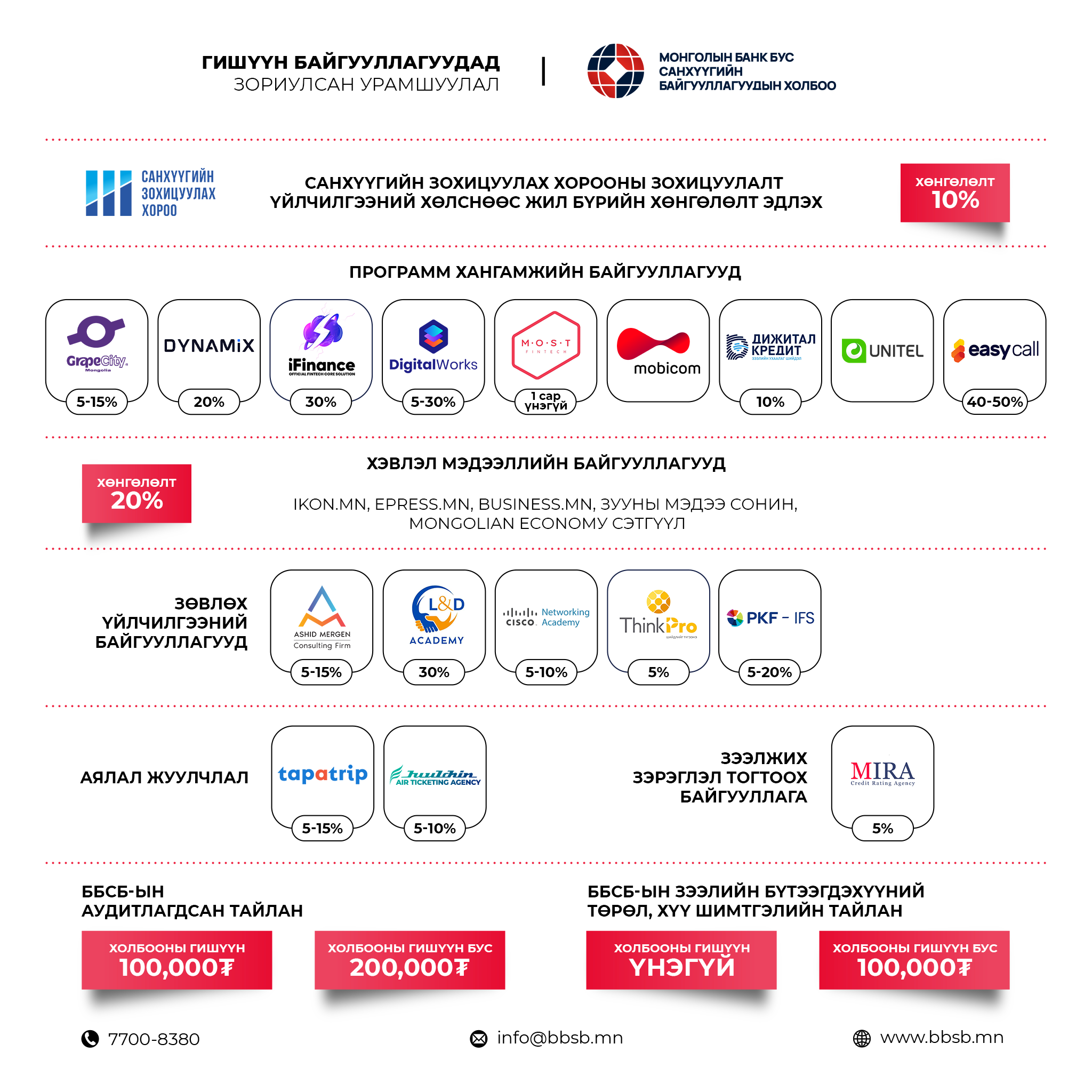 - Холбооноос зохион байгуулагдах сургалтуудад хөнгөлөлттэй үнээр хамрагдах